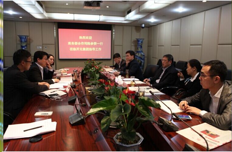 3月23日,商務(wù)部合作司陳林參贊在合作司境外合作處處長陳忠、黃小玲,中國機(jī)電產(chǎn)品進(jìn)出口商會投資促進(jìn)部主任盛國飛的陪同下,蒞臨KY開元集團(tuán)總部指導(dǎo)工作,集團(tuán)副董事長何永平攜相關(guān)部門、人員對陳參贊一行的到來表示了最熱烈的歡迎,并對KY開元集團(tuán)的發(fā)展和規(guī)劃進(jìn)行了詳細(xì)匯報(bào)。