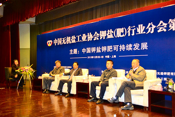??? 2012年12月3日,中國無機鹽工業協會鉀鹽(肥)行業分會第七屆年會在上海舉行。趙思儉董事長應邀參加本屆年會,并與鉀鹽行業的相關領導和專家進行了深入交流。