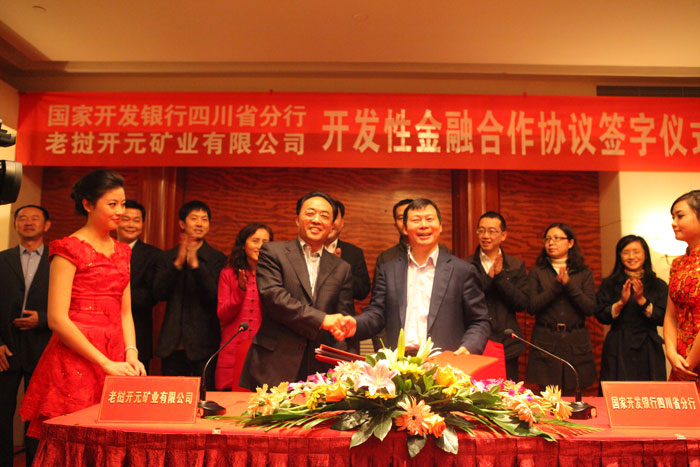 ??? 2012年11月14日下午,亞洲鉀肥集團有限公司所屬的老撾KY開元礦業有限公司(簡稱老撾KY開元)與國家開發銀行四川省分行在凱賓斯基飯店舉行開發性金融合作協議簽字儀式。國家開發銀行四川省分行黨委書記、行長王中,副行長彭忠,集團董事長、老撾KY開元董事長趙思儉、副總裁余曉波等領導代表出席了簽字儀式。