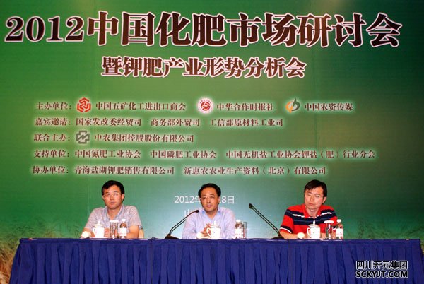 ??? 本報(bào)訊 9月18日,由中國五礦化工進(jìn)出口商會(huì)、中華合作時(shí)報(bào)、中國農(nóng)資傳媒聯(lián)合主辦的“2012中國化肥市場(chǎng)研討會(huì)暨鉀肥產(chǎn)業(yè)形勢(shì)分析會(huì)”在海濱名城青島舉行。國家發(fā)改委、商務(wù)部、工信部等相關(guān)領(lǐng)導(dǎo)及國內(nèi)涉鉀企業(yè)領(lǐng)導(dǎo)悉數(shù)參會(huì),共同對(duì)行業(yè)政策、鉀肥市場(chǎng)趨勢(shì)進(jìn)行解讀,尋找鉀肥市場(chǎng)新動(dòng)力。集團(tuán)董事長(zhǎng)總裁趙思儉,匯力農(nóng)資董事、常務(wù)副總經(jīng)理陳洪偉應(yīng)邀參加會(huì)議。
